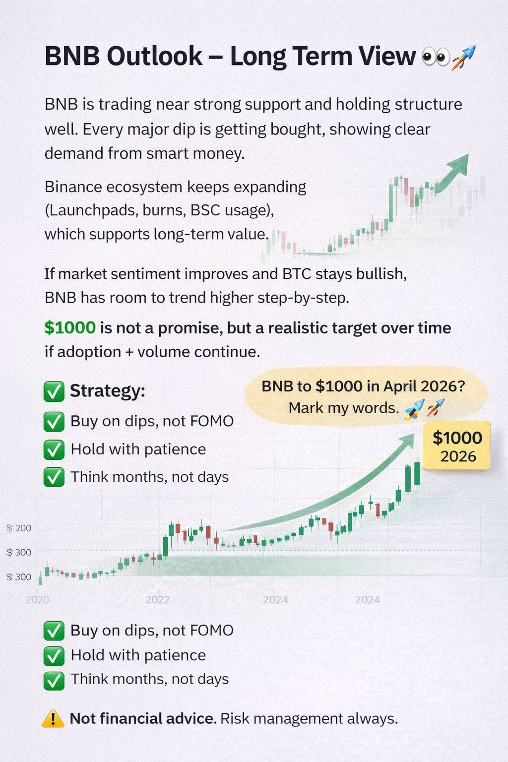 Binance ecosystem keeps expanding (Launchpads, burns, BSC usage), which supports long-term value.