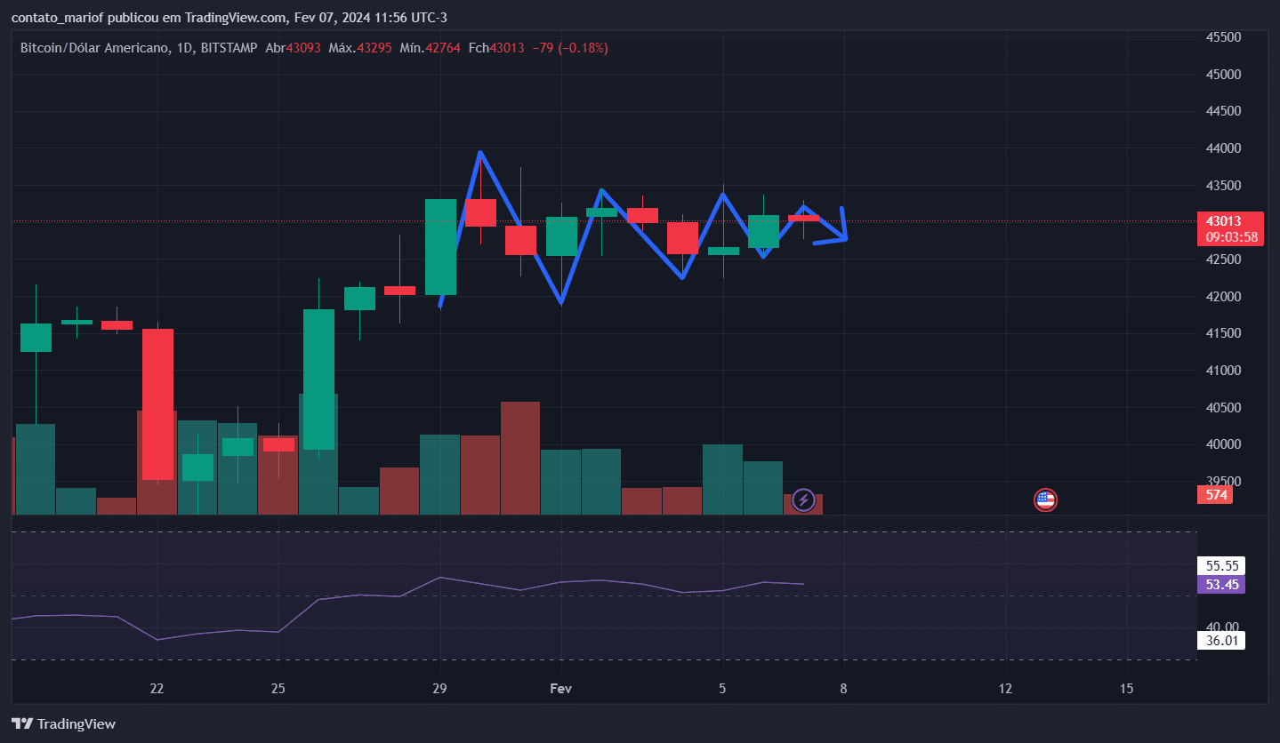 Sul grafico giornaliero (1D), abbiamo osservato che ciò implicherebbe una rottura del modello di equilibrio. Questo schema funziona come una molla che, quando compressa e rilasciata, rilascia tutta l'energia accumulata. Questo scenario ha il potenziale per portare BTC ad uscire dall’attuale fascia di prezzo di 41/43 mila dollari, il che potrebbe comportare un significativo apprezzamento anche delle altcoin.