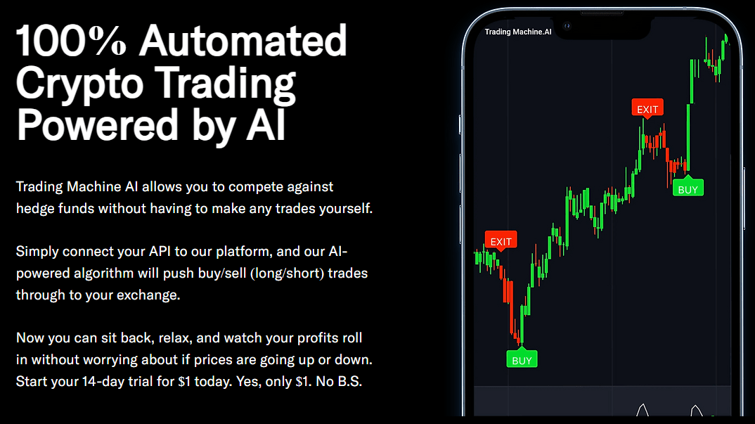 Perché è emozionante per te? Che tu sia un trader esperto o nuovo nel mondo delle criptovalute, Trading Machine AI offre un livello di intuizione ed efficienza precedentemente inimmaginabile. Questi robot non si limitano a seguire il mercato; lo prevedono, utilizzando algoritmi complessi per prendere decisioni informate che massimizzano i tuoi profitti.