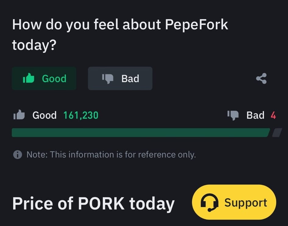 Il voto positivo schiacciante di oltre 160.000 su Binance è un chiaro indicatore dell'ampia accettazione di $PORK e della fiducia che la comunità ripone nel suo potenziale. Questa pietra miliare non è solo un numero; rappresenta una convinzione collettiva nel valore del token e nel futuro che promette. Un supporto così forte da parte della comunità è una risorsa potente, che rende $PORK una presenza formidabile nel mercato delle criptovalute.