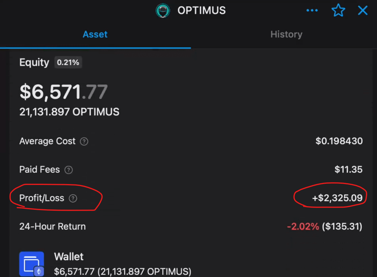 7/➮ Il successivo asset che ha acquisito è stato $OPTIMUS.