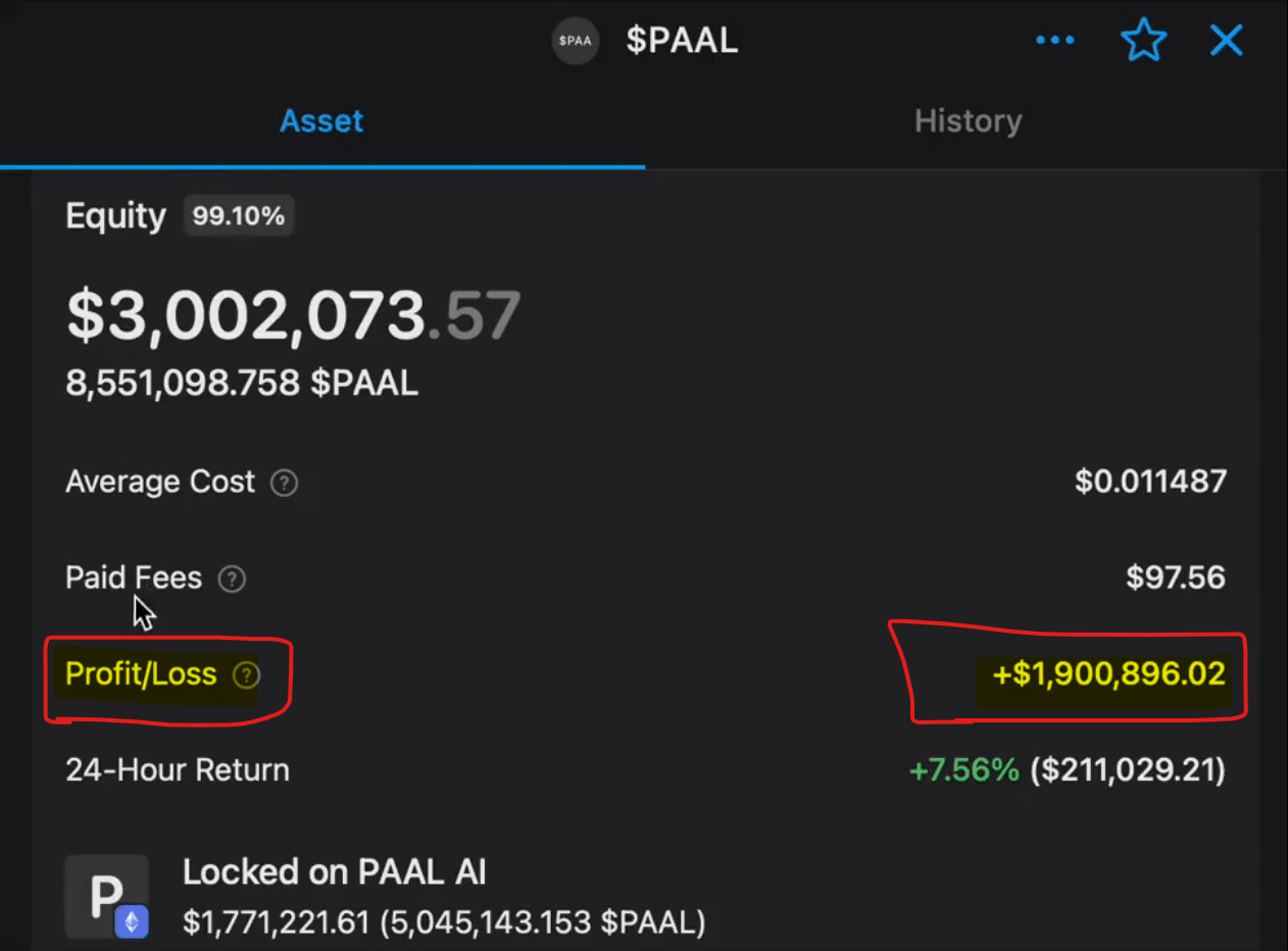 3/➮ Il profitto più grande di Whale è arrivato da $PAAL