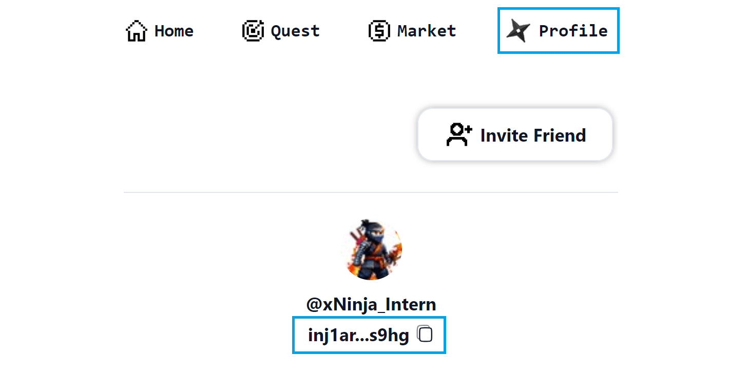 Riceverai automaticamente il tuo indirizzo inj una volta effettuato l'accesso con successo! Puoi copiare il tuo indirizzo inj dalla sezione del profilo per depositare $INJ sul tuo portafoglio!