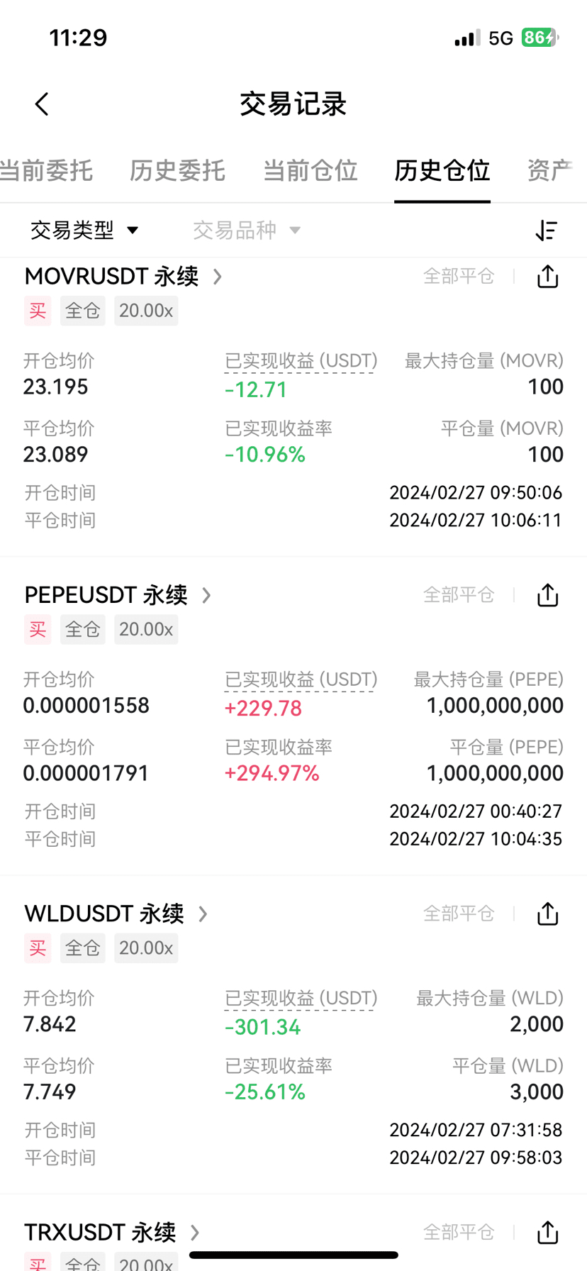 A tutti è stata insegnata una lezione e hanno smesso di perdere circa 1500U. Se non avessi realizzato un piccolo profitto dalla Meme Coin, in questo momento sarebbe tornato a zero. Le persone semplicemente non riescono a guadagnare soldi oltre le loro conoscenze andrà sicuramente perso. È indegno della moralità. Non dovresti aprire gli ordini in modo casuale e non puoi aprire una posizione completa con una leva 20 volte. Non ho osato aggiungere alla posizione quando ho aperto 5 volte prima 20 volte e prima o poi sarà zero. Non ho mangiato molto, sono stato pugnalato ogni volta. Ho perso ancora 200U oggi. Se il controllo del rischio di capitale non è stato fatto bene, devo rifletterci Il tempo non sarà sempre buono e non sempre le persone avranno il sopravvento Non lasciarti influenzare. Non dovresti provare emozioni. Non lasciarti influenzare tori e orsi. Le emozioni sono deboli. Puoi guadagnare denaro ogni giorno solo se prendi un cucchiaio d'acqua. Puoi guadagnare denaro solo secondo le tue conoscenze. L'interesse composto stabile andrà bene per oggi mi sono fatto la doccia e non ho nemmeno mangiato. 01 Dai, cambiati d'ora in poi e resta sveglio.#WLD #PEPE #BTC