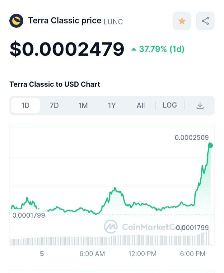 Terra Luna Classic solo una scintilla e prezzo aumentato del 39%