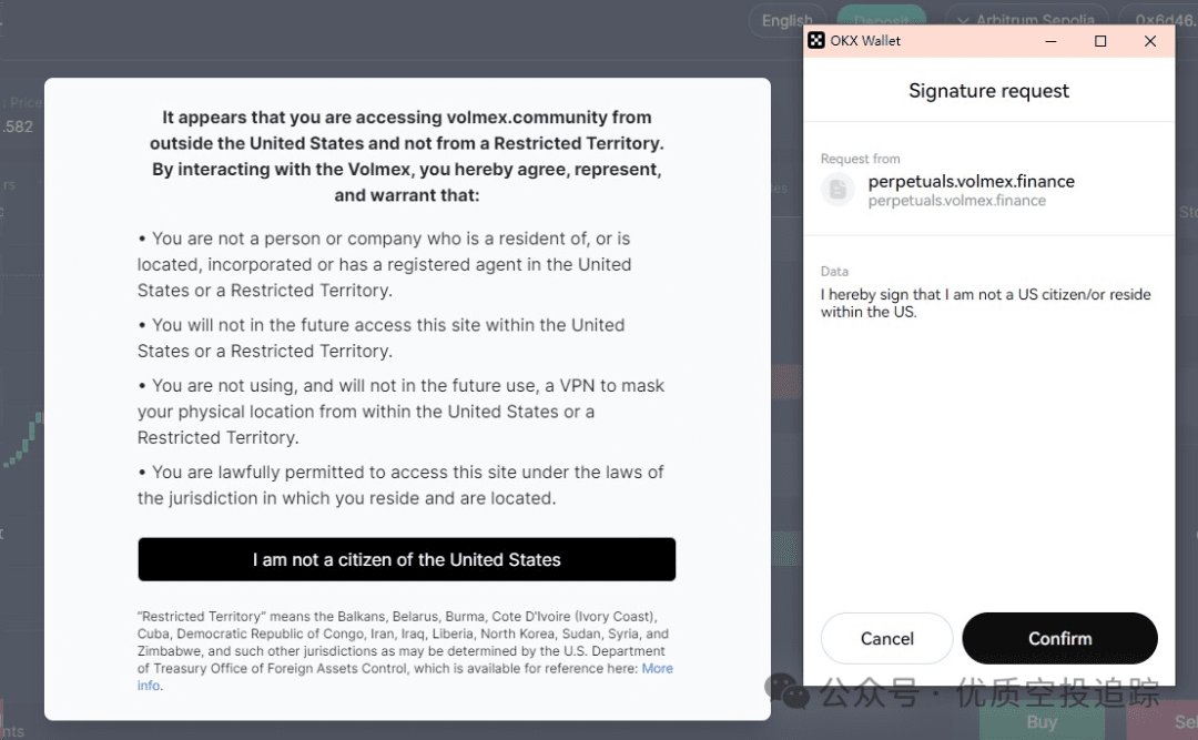 Successivamente, verrà visualizzata una conferma che ti chiederà di confermare che non sei americano. Fai clic sul pulsante e fai clic su Conferma nella conferma della firma pop-up.