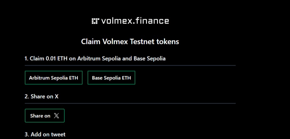 Volmex è il primo e principale costruttore di indici di volatilità delle criptovalute e prodotti di volatilità delle criptovalute. Gli indici di punta di Volmex BVIV (Bitcoin Volmex Implied Volatility) ed EVIV (Ethereum Volmex Implied Volatility) misurano la volatilità attesa costante a 30 giorni per Bitcoin ed Ethereum. Volmex ha creato prodotti/derivati sulla volatilità delle criptovalute relativi agli indici BVIV ed EVIV, che possono essere utilizzati per copertura/gestione del rischio, speculazione, ecc. Per la prima volta in assoluto, i futures perpetui legati agli indici BVIV ed EVIV rendono facile negoziare la volatilità delle criptovalute con la leva finanziaria. Il testnet DEX dei futures perpetui Volmex è attualmente disponibile su Base Goerli e Arbitrum Sepolia. Il trading su Mainnet verrà lanciato presto.