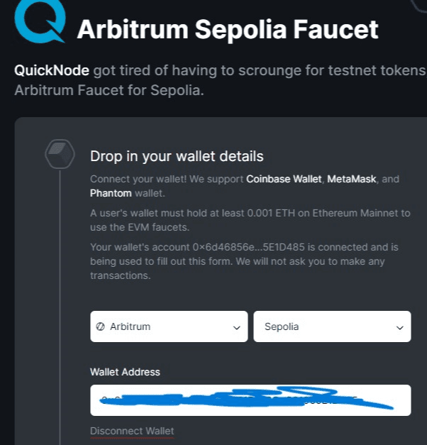 Questo sito Web di ricezione dell'acqua richiede 0,001 eth nel portafoglio sulla rete principale. È meglio averlo. Questo rubinetto può ricevere acqua anche da altre catene. Verrà utilizzato in futuro.