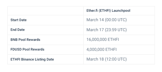 Come nota finale, ecco una rapida ripartizione delle date chiave e delle informazioni sulla campagna Ether.fi Launchpool: