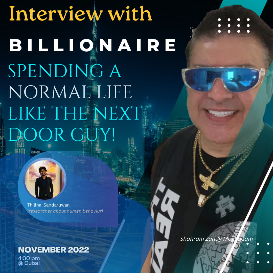 Negli ultimi mesi mi sono immerso nello studio del comportamento umano dei super-ricchi. Il mio obiettivo principale è stato capire come la loro immensa ricchezza possa potenzialmente modellare il loro carattere. Nel frattempo, mi sono imbattuto nelle affascinanti storie di vita di diversi miliardari, tra cui Elon Musk, Mark Zuckerberg, Jeff Bezos e Bill Gates. Tuttavia, è stato durante la mia ricerca che ho scoperto la straordinaria storia di Shahram Zandy Moghadam, un umile miliardario cripto che ho pensato di fare un viaggio a Dubai per incontrarlo, dopo che il corrispondente ha accettato di fare una breve intervista con me. Non pensavo che gli sarebbe piaciuto incontrare qualcuno come me. L'esperienza mi è sembrata un sogno diventato realtà, un momento straordinario della mia vita.