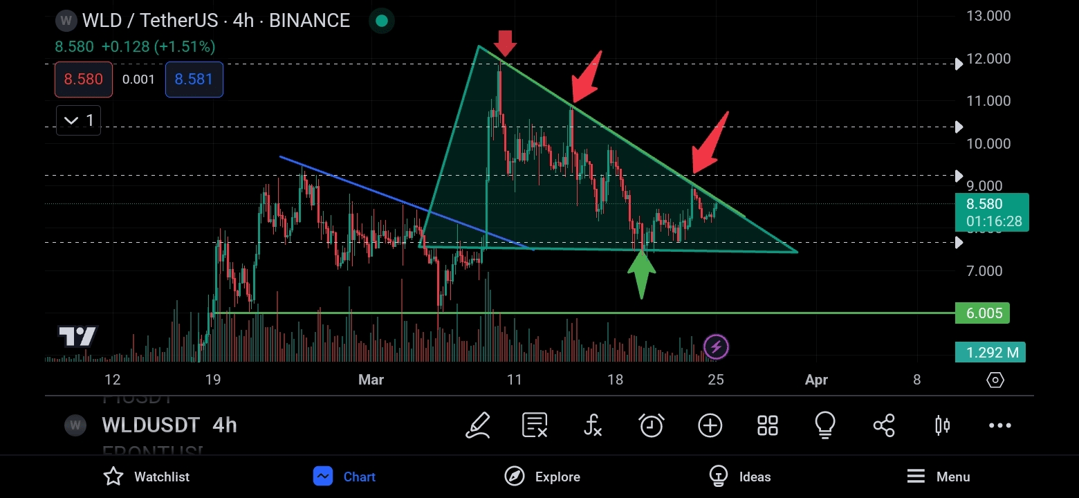 La moneta mondiale ha formato un modello buono e forte su un intervallo di tempo di 4 ore. E può scoppiare in qualsiasi momento. Se il breakout funziona, si formerà una buona mossa.