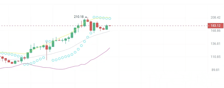 Attualmente, il prezzo di scambio di Solana è di 183 dollari, con una flessione settimanale dell'11%.