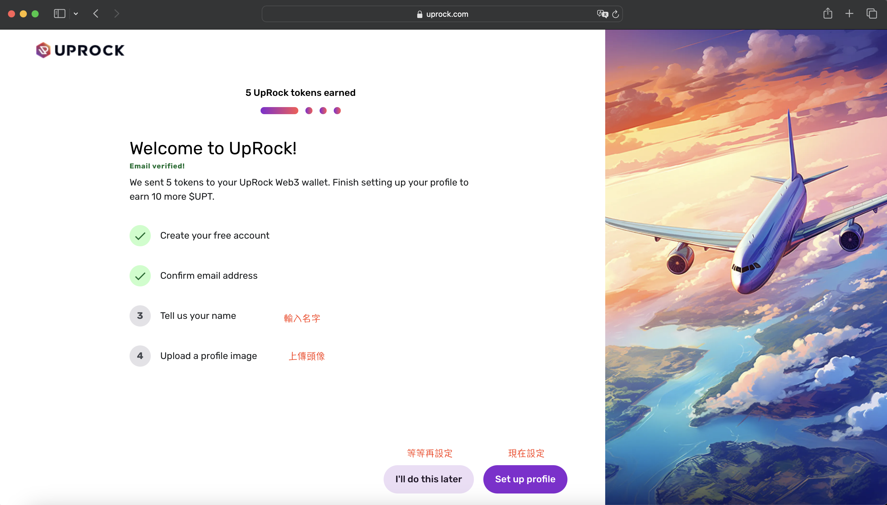 3. Una volta completato questo passaggio, verranno inviati 5 UPT al tuo account.
