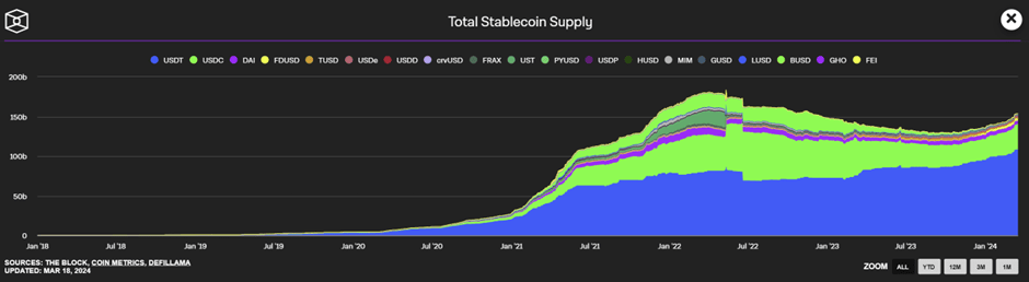 Fonte: https://www.theblock.co/data/stablecoins/usd-pegged/total-stablecoin-supply