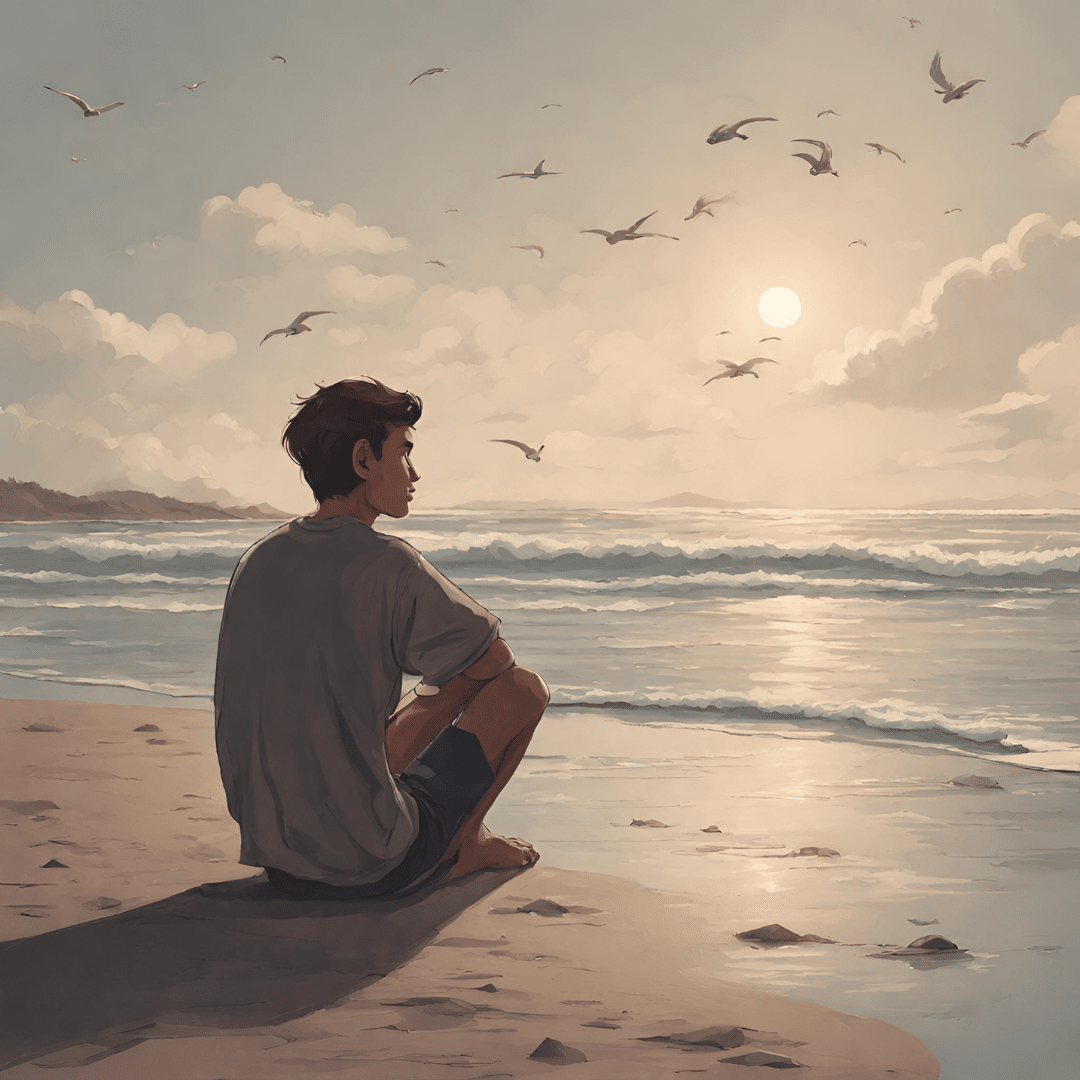 Mentre il sole lentamente tramontava sotto l'orizzonte e il giorno volgeva al termine, Lucas si ritrovò su una spiaggia solitaria dove si poteva udire il dolce sciabordio delle onde, riflettendo sulla giornata. Provò una profonda gratitudine per tutte le esperienze che aveva avuto: gli alti e bassi, le gioie e le sfide. In quel momento, si rese conto che il viaggio non riguardava solo l'esplorazione del mondo, ma anche la conoscenza di se stesso e la crescita. 🌊