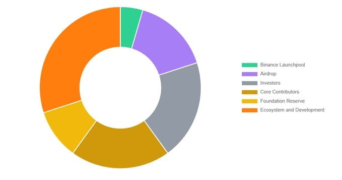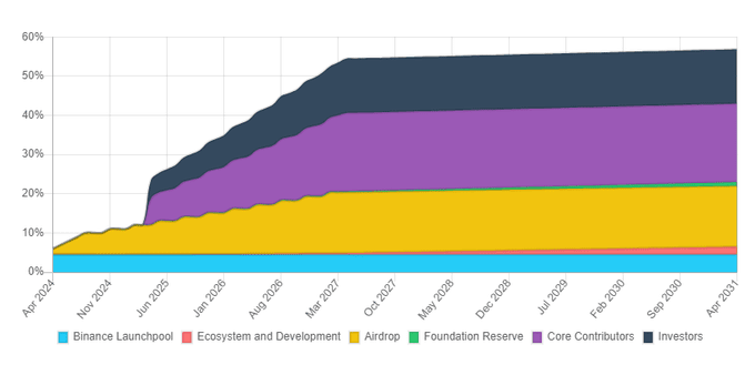 Al momento della quotazione, verrà sbloccato il 9% della fornitura totale, di cui il 9% comprende 2 categorie: Binance LaunchPool e Airdrop.