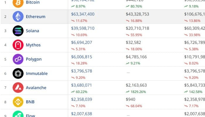 Secondo i dati dell'aggregatore NFT CryptoSlam, Bitcoin è stata la blockchain più attiva per gli NFT la scorsa settimana, facilitando vendite per 90,1 milioni di dollari. Nello stesso periodo, Ethereum, al secondo posto, ha registrato vendite per 63,3 milioni di dollari.