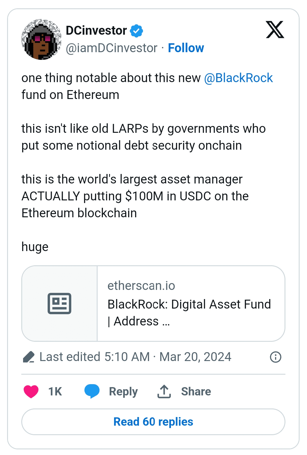 Un indirizzo Ethereum associato al fondo BUIDL è stato finanziato con 100 milioni di token USDC.
