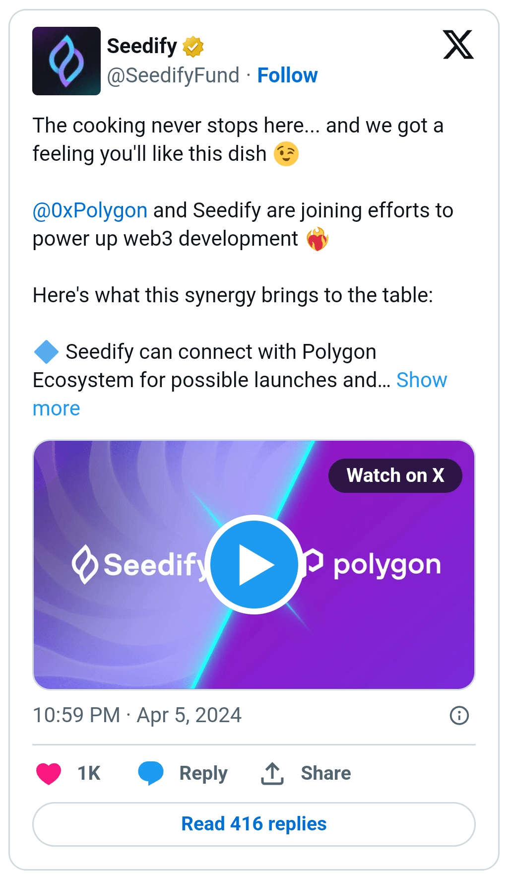 L'ecosistema Polygon continua a vedere molte attività e partnership. Recentemente, Polygon ha collaborato con l'incubatore web3 e la piattaforma launchpad Seedify per consentire ai progetti basati su Polygon di utilizzare la piattaforma Seedify.