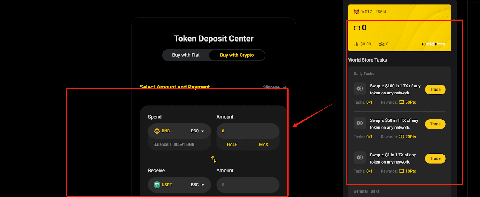 ◈ Per le attività di scambio, è possibile utilizzare qualsiasi token di qualsiasi catena pubblica, basta scambiare più di 100U.