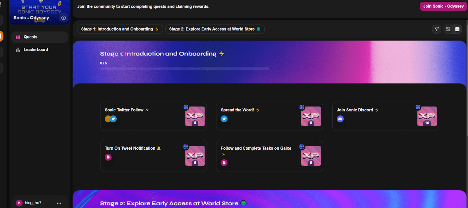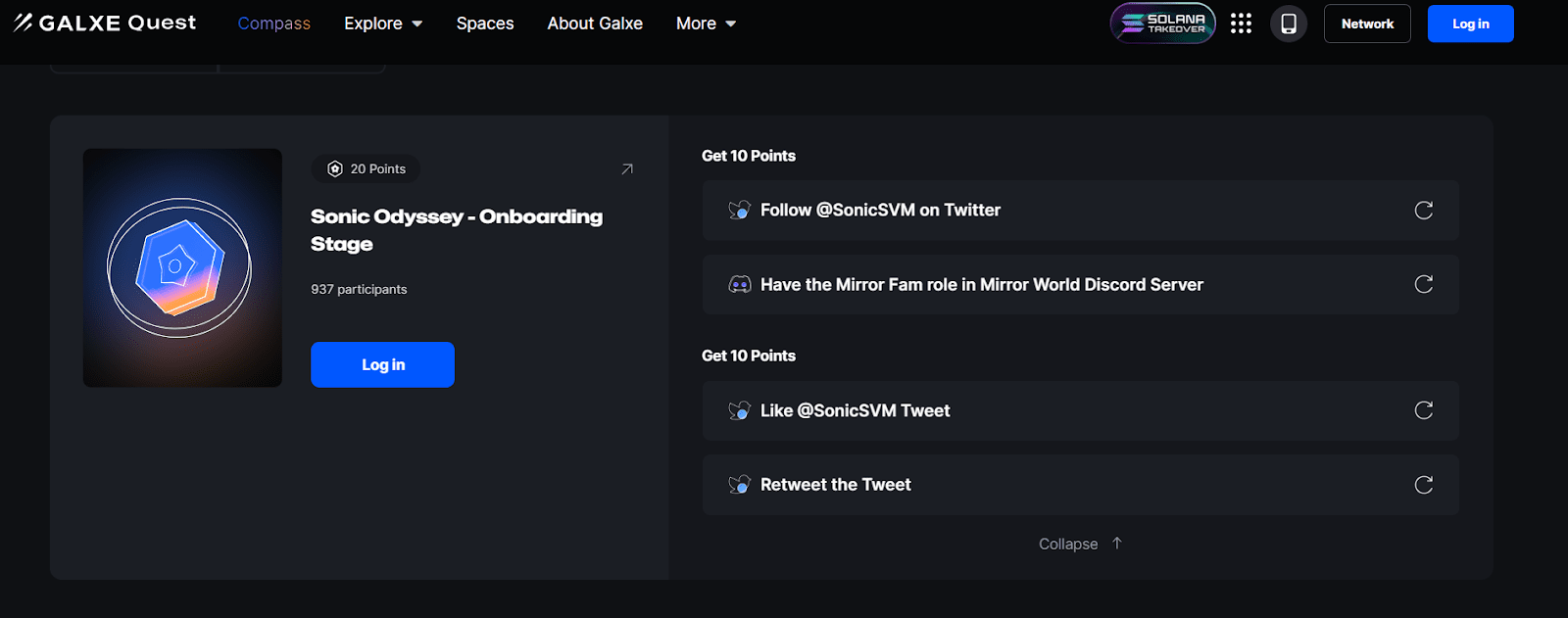 ◈ Ingresso attività Zealy: https://zealy.io/cw/sonic/questboard