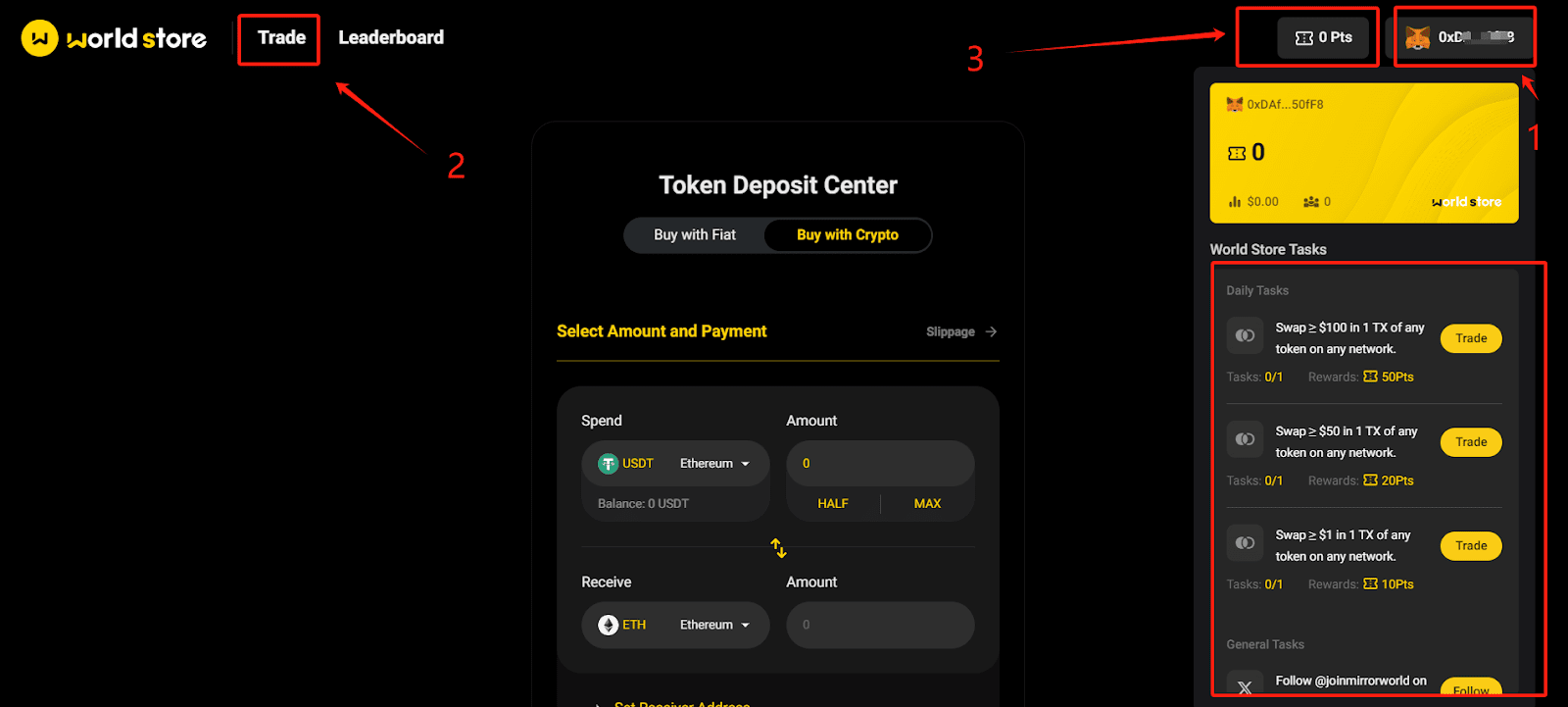 1.Visita il sito ufficiale https://worldstore.mirrorworld.fune collega il tuo portafoglio.