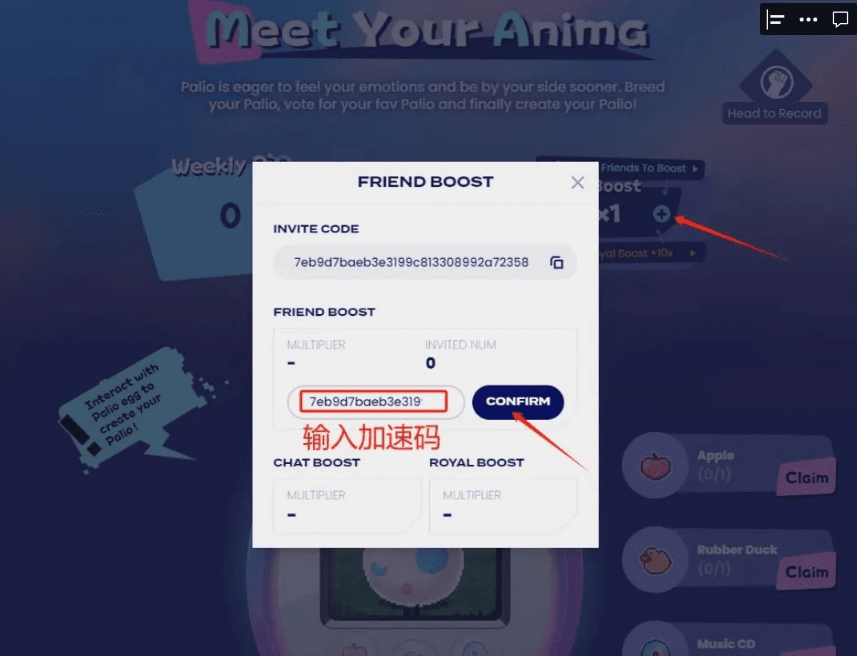 4. Fai clic sul segno Boost+ e inserisci il codice di accelerazione per ottenere 80 punti;