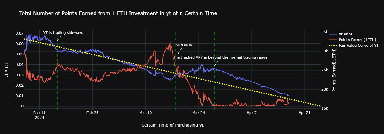 A partire dal 18 marzo (UTC), il prezzo YT (relativo all'asset sottostante) ha registrato un aumento significativo durato 7 giorni, correlato all'airdrop di Etherfi nel primo trimestre. Si tratta chiaramente di una variazione di prezzo non lineare.