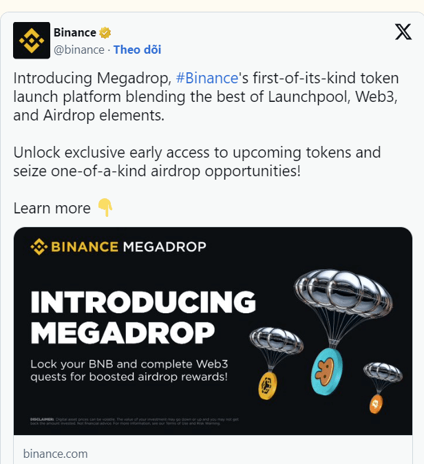 Questa combinazione unica di impegno, formazione e ricompense ha reso Megadrop una grande esperienza interattiva sia all'interno di Binance che nel più ampio ecosistema crittografico.