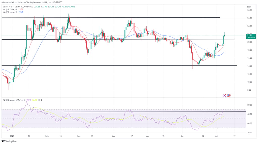 Se l'indice raggiunge questo punto, ci sono buone probabilità che SOL salga a 23,00 $.