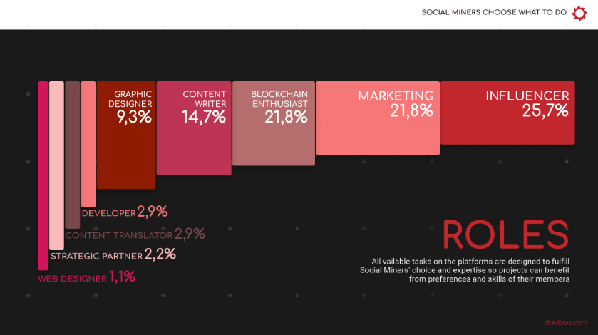 I minatori sociali ricoprono vari ruoli, utilizzando le loro competenze e preferenze a vantaggio dei progetti: