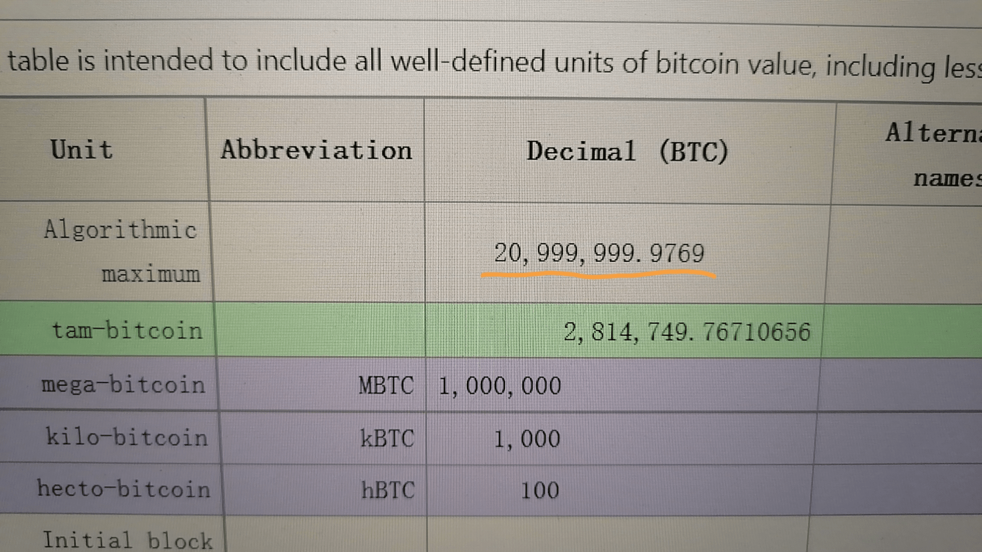 Il numero reale di BTC è 20999999.9769