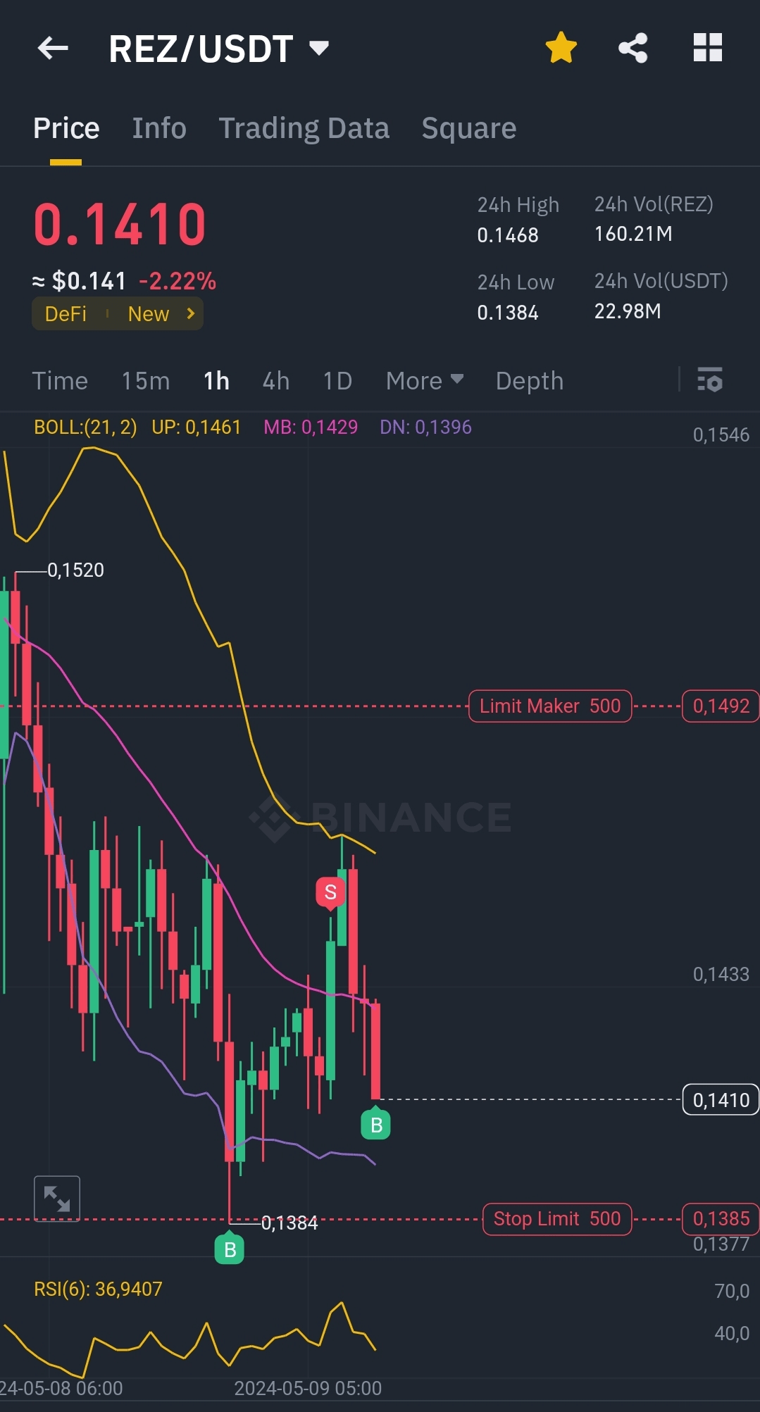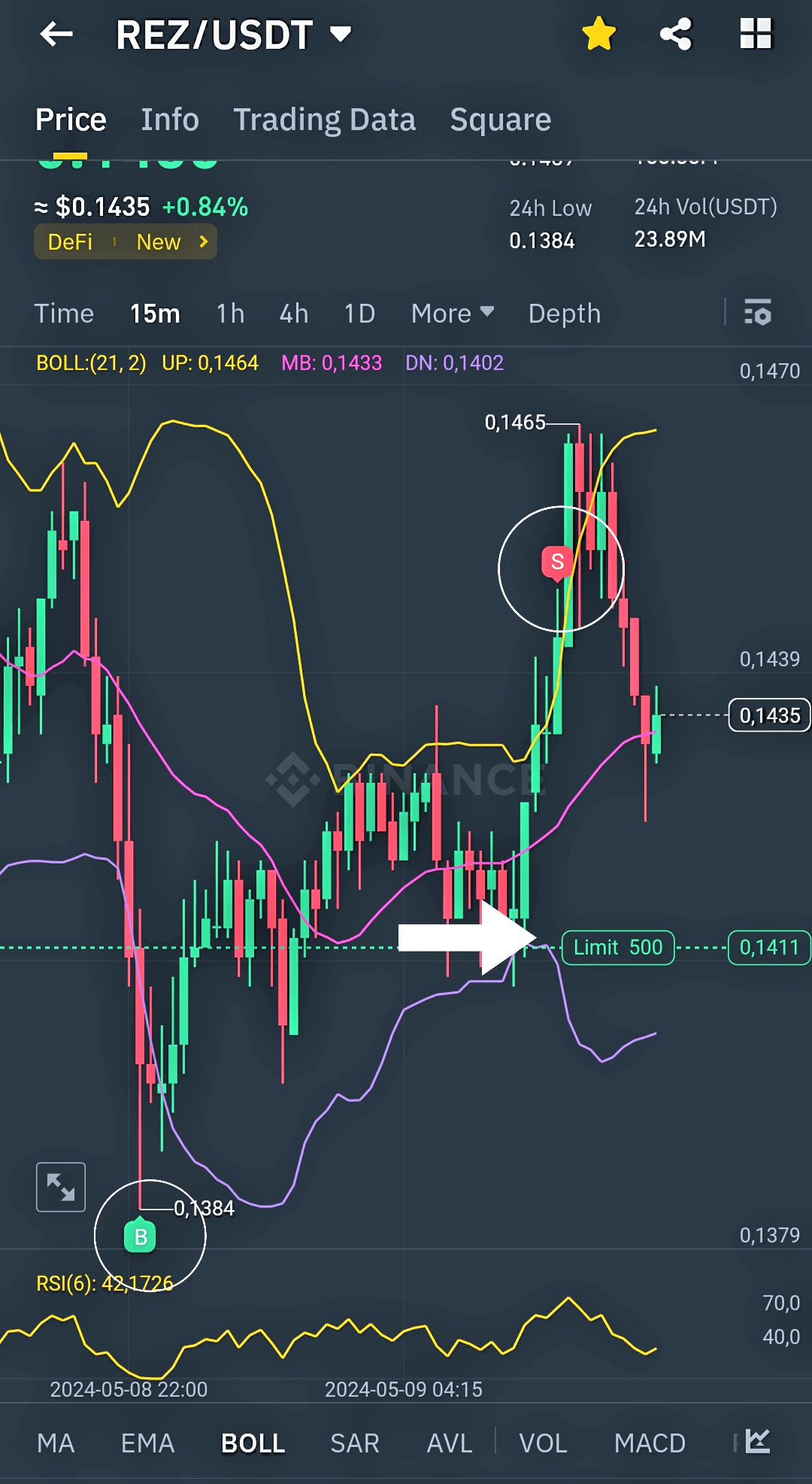 Acquista tra 0,1404 e 0,1412 usdt