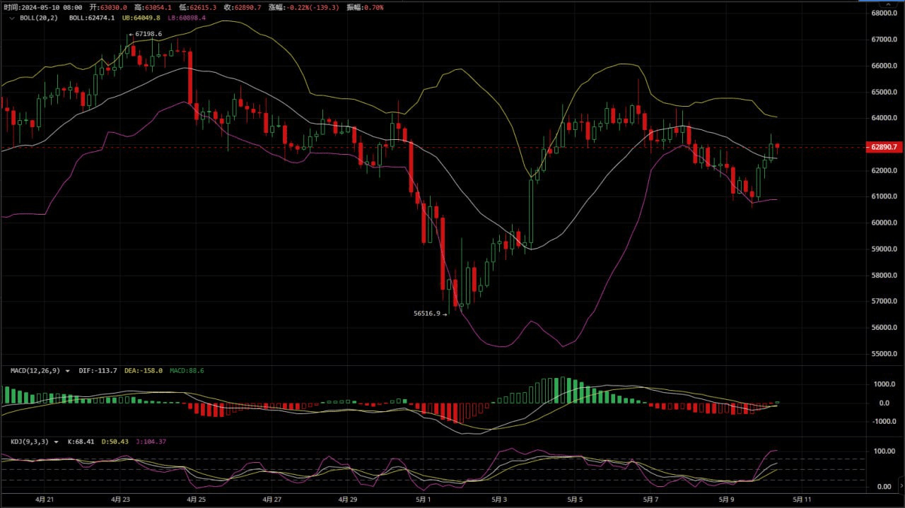 La linea giornaliera di Bitcoin ha appena toccato la posizione di pressione, e la linea giornaliera ha chiuso la linea positiva per formare una conversione lungo-corto, formando un fagocitamento rialzista. Tuttavia, il prezzo è ancora in una tendenza ribassista. La parte superiore della linea giornaliera è soppressa e focalizzata intorno a 63500. I rialzisti sono lenti ad aumentare la loro energia e sono deboli, continuano a prestare attenzione alla pressione al rialzo sulla linea giornaliera . Nelle quattro ore a breve termine, il prezzo ha completato una svolta ed è entrato nel canale ascendente 62200-62500 formando un intervallo di supporto ascendente a breve termine Sebbene l'energia lunga e corta sull'indicatore del grafico allegato abbia una tendenza di inversione, il KDJ è il terzo la linea è troppo sensibile per operare in grandi volumi, indicando che la posizione rialzista di quattro ore Il potere non è molto forte e seguito. Le tre linee della capsula superiore si aprono in un'ora e la maggior parte delle persone effettuerà ordini long sulla linea 61800. Penso che sia già un livello di pressione se il prezzo è sotto pressione e scende, ciò dimostra che il supporto sottostante potrebbe non sarà efficace. I rialzisti dovranno prendere fiato se vogliono esercitare la loro forza superando 63500, altrimenti il prezzo cadrà comunque per lo shock. Sulla base dei suggerimenti di cui sopra, le vendite allo scoperto saranno l’obiettivo principale del successivo rimbalzo di Bitcoin.