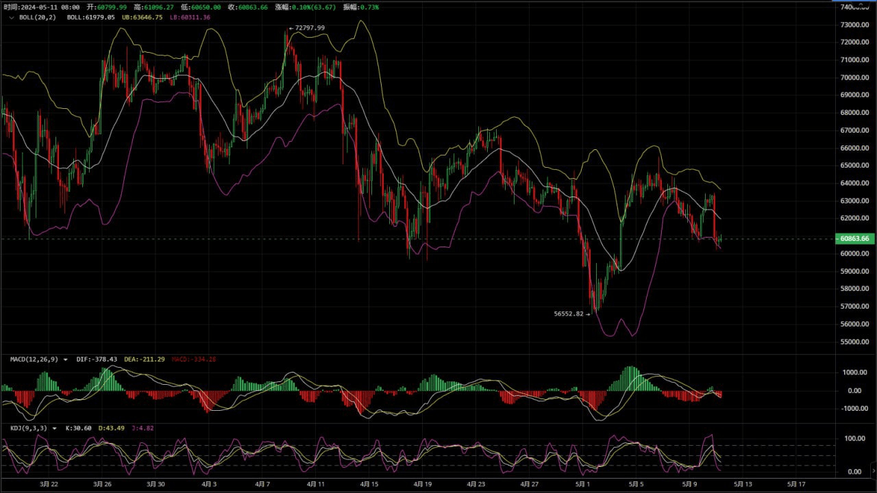 Dopo che la linea giornaliera Bitcoin ha completato la conversione di energia long-short, l'ordine short di 63.500 effettuato ieri è stato un peccato. Mancava poco a completarlo e il margine di declino era ancora molto ampio se il profitto complessivo fosse stato completato. il profitto complessivo potrebbe essere superiore a 3.000 punti a breve termine. Non è necessario enfatizzare troppo la linea giornaliera questo fine settimana. Si consiglia di concentrarsi sulla resistenza intorno a 61800-62100. Il periodo di quattro ore a breve termine è un consolidamento dopo un calo. Ciò non significa trovare una posizione di supporto e iniziare a spingere verso il basso per trovare potere al rialzo. Si consiglia di concentrarsi sulla linea 59200 per il supporto sottostante. Secondo l'indicatore nell'immagine allegata, la posizione corta macd ha completato una seconda operazione su larga scala. L'apertura a tre linee della capsula superiore di un'ora è seria e il prezzo sta inseguendo il canale discendente. A breve termine, gli indicatori generali del grafico mostrano segni di ripresa al rialzo. 61800 è l'obiettivo su cui concentrarsi durante il giorno. Sulla base dei suggerimenti di cui sopra, Bitcoin continuerà a rimbalzare e ad essere short.