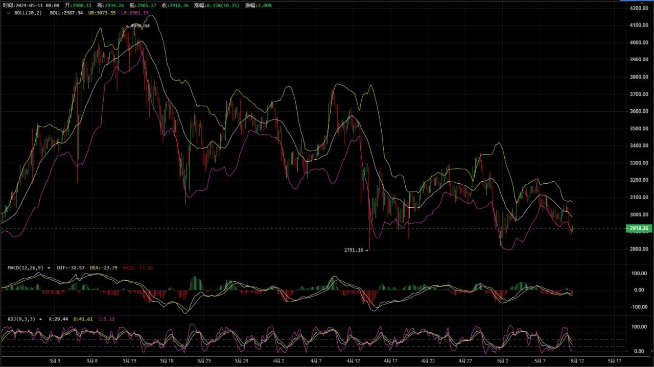 Non vi è alcun segno di rimbalzo sulla linea giornaliera di Ethereum. Fortunatamente, l'analisi di mercato mattutina di ieri ci ha ricordato di effettuare ordini brevi sulla linea 3050. Nel complesso, c'è spazio per più di 150 punti. Al momento, K ha raggiunto la precedente posizione bassa. Dopo che Bitcoin è sceso con successo sotto la soglia dei 60.000, Ethereum ha ancora spazio per scendere. Il supporto complessivo può essere concentrato su 2760-2780. Nelle quattro ore a breve termine, il prezzo scorre in un canale discendente. Gli indicatori nell'immagine allegata continuano a scendere, determinando un successivo trend di recupero. Il successivo riferimento all'indicatore perde valore, quindi attualmente non vi è alcun punto valido a cui fare riferimento nelle ultime quattro ore. Per la resistenza al rialzo di un'ora, si consiglia di concentrarsi sull'intervallo 2960-2980. Naturalmente, anche 3000 è un obiettivo chiave. Sulla base dei suggerimenti di cui sopra, il rimbalzo di Ethereum dovrebbe essere ridotto. #ETFvsBTC >#BTC