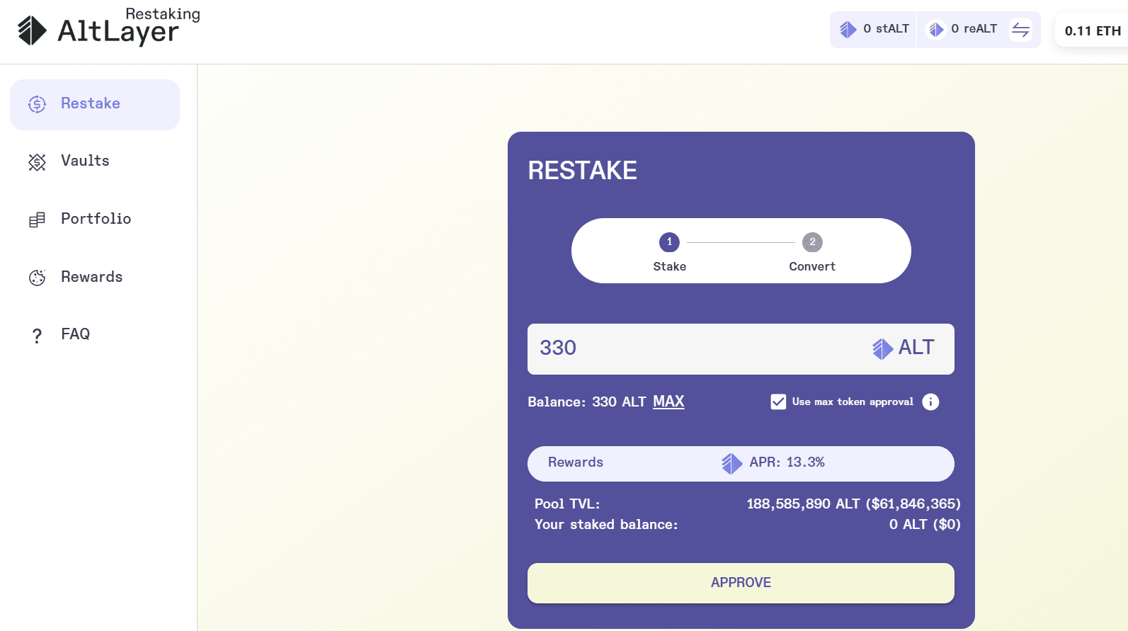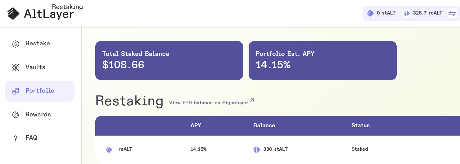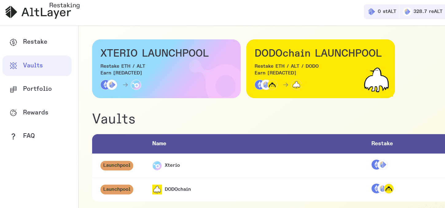 Il re-staking di ALT consente ai detentori di ALT di puntare ALT per ottenere entrate APR più elevate e altri premi di airdrop del progetto.