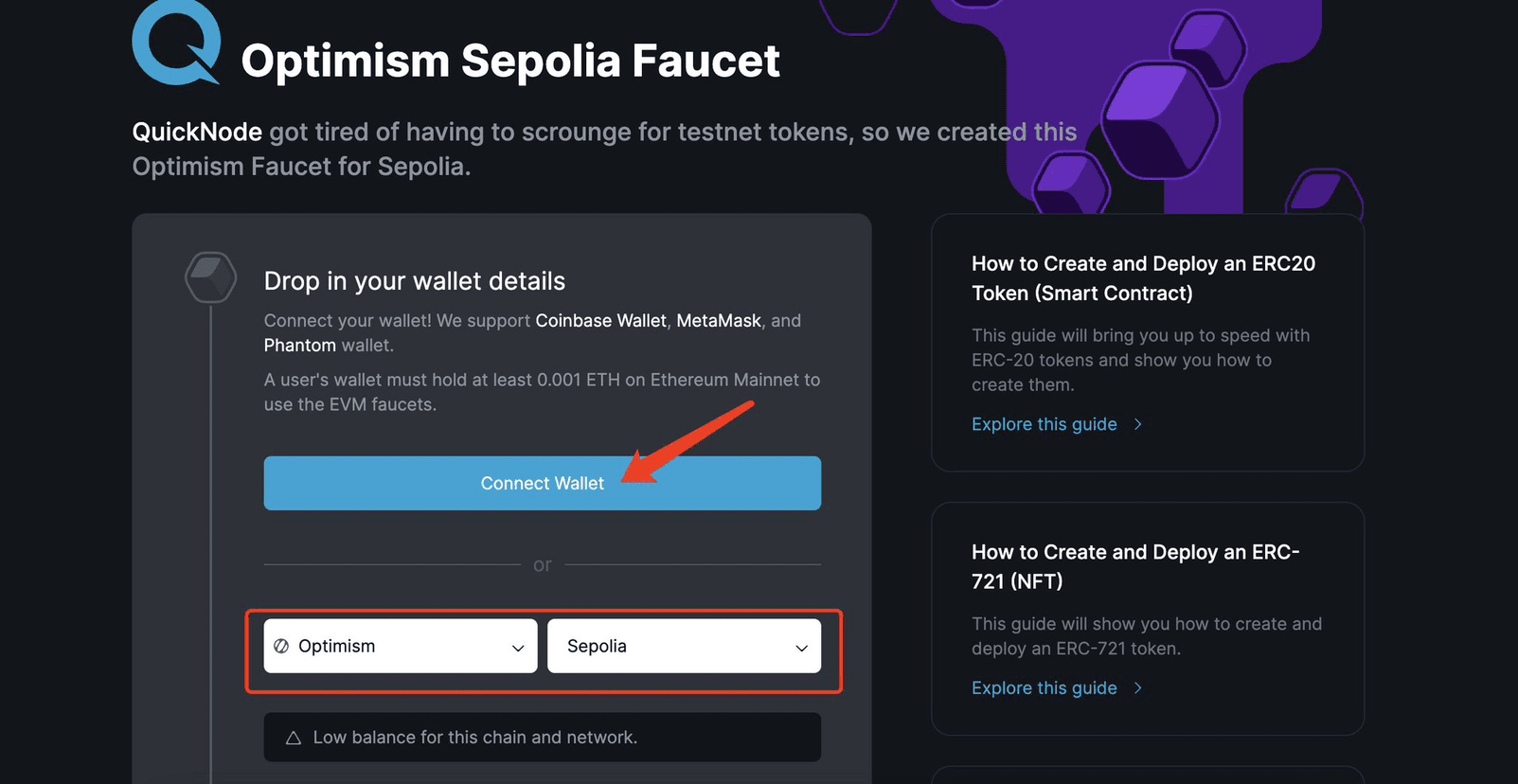 Si consiglia di ricevere gratuitamente i token di test Optimism Sepolia ogni giorno per prepararsi alle attività future.