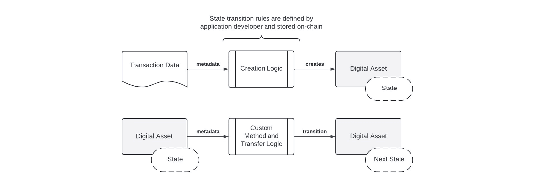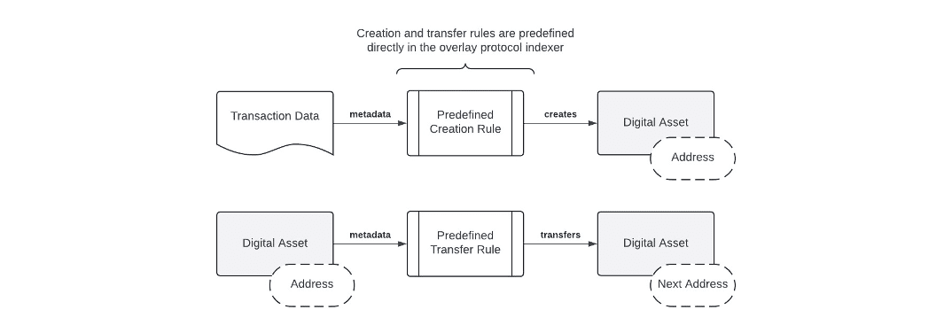 Finora, tutti i protocolli overlay su Bitcoin funzionano sulla base di macchine a stati fisse o predefinite. Ci sono due componenti principali in questi protocolli overlay: quelli responsabili della segnalazione per creare risorse digitali e le regole che governano il trasferimento di tali risorse digitali. Queste regole della macchina a stati sono codificate nei rispettivi indicizzatori del protocollo overlay e gli sviluppatori non possono personalizzare le regole di creazione o trasferimento.
