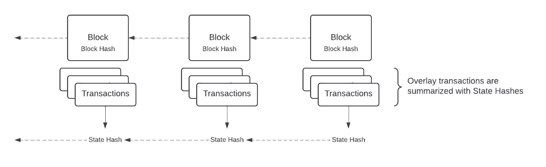 La sincronizzazione dello stato può essere ottenuta tramite l'hashing dello stato (statehash), un meccanismo che comunica lo stato interno dell'indicizzatore del protocollo overlay a osservatori esterni. Esponendo gli hash di stato, le parti distribuite possono facilmente capire se stanno seguendo le stesse regole e sono sincronizzate tra loro.