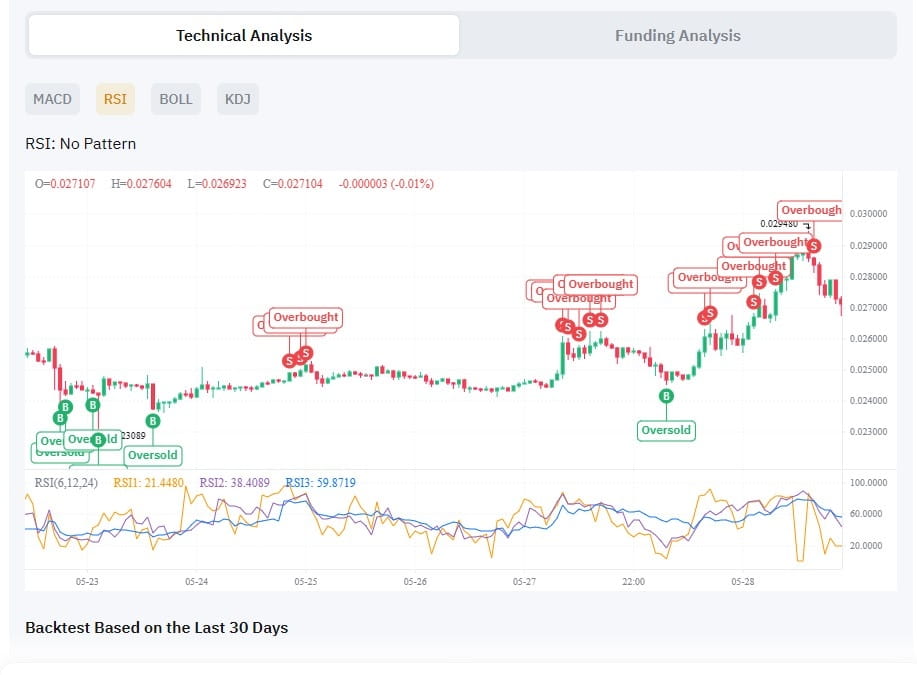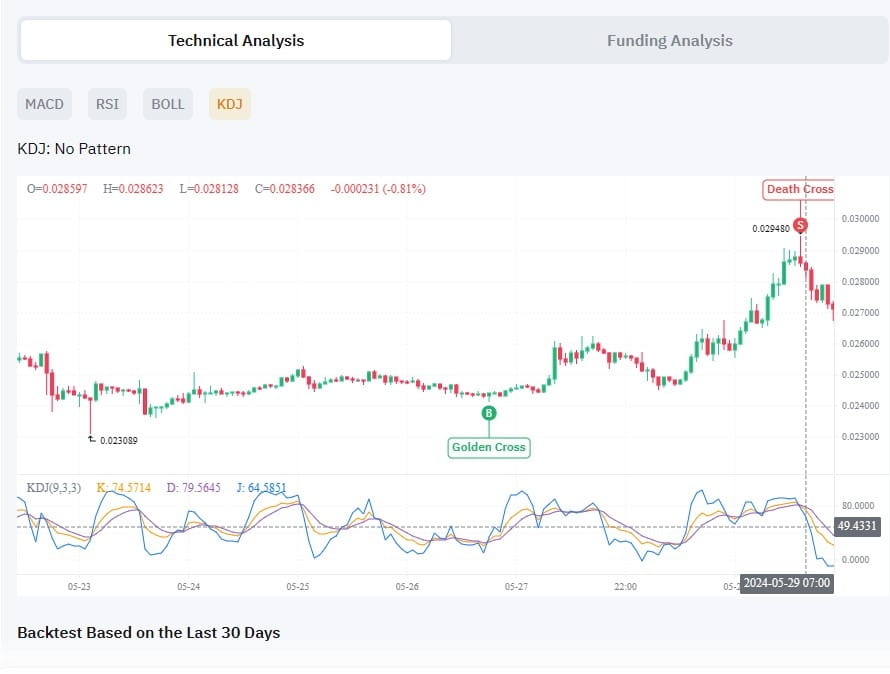 Osservando gli indicatori tecnici, non ci sono modelli o segnali specifici dagli indicatori KDJ, MACD, RSI, EMA BREAK e BOLL. Ciò suggerisce che non esiste una direzione o una tendenza chiara a breve termine.