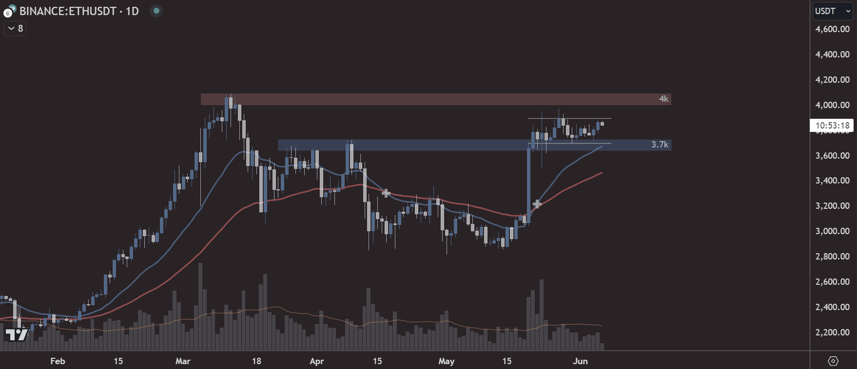 Quando è arrivata la notizia dell'ETF, l'ETH ha registrato un'impennata significativa, passando dai minimi di 3.000 dollari a quasi 4.000 dollari. I tori esultano, ma quale sarà il prossimo?