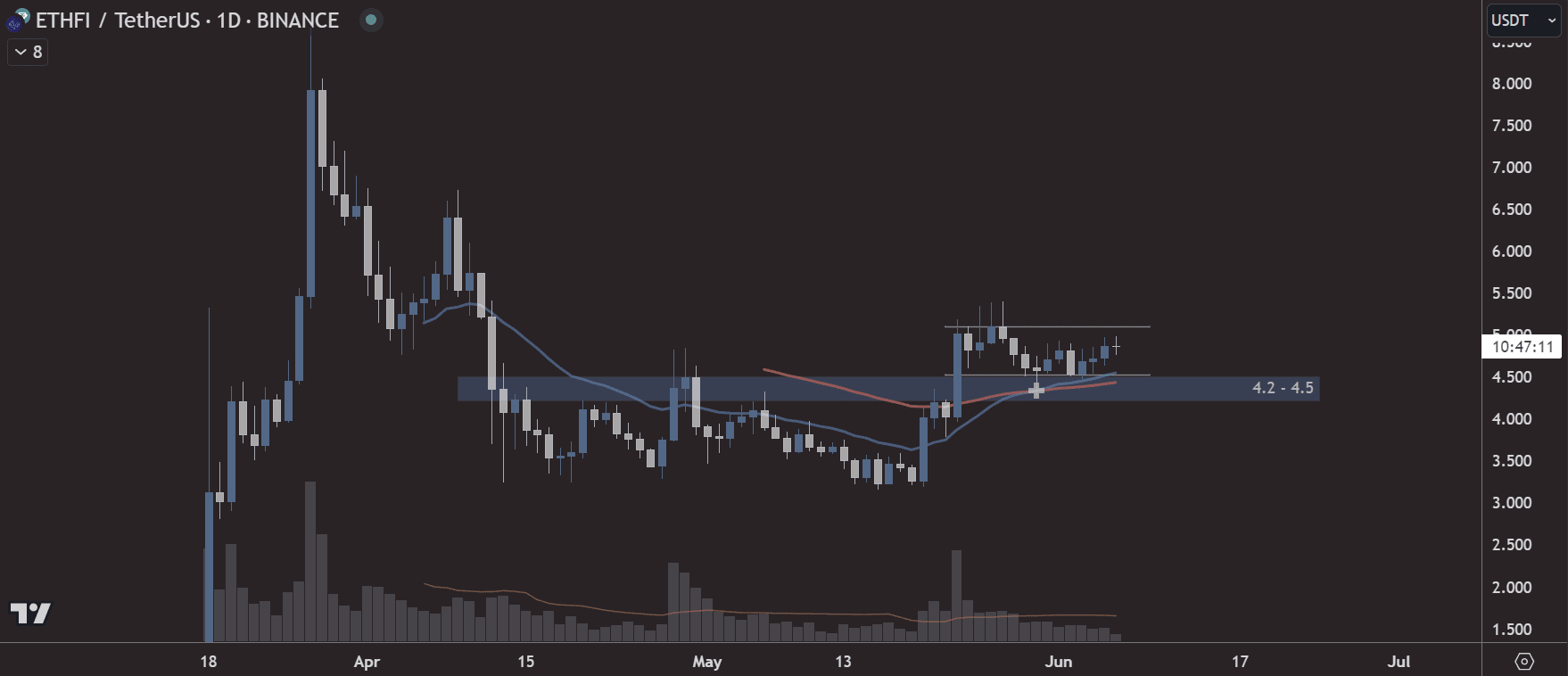 $ETHFI 💸: Etherfi guida il mercato del liquid restaking (LRT) con un enorme valore totale bloccato (TVL) di $ 6,5 miliardi. Offre liquidità e ricompense di staking agli utenti. Tieni d'occhio questa gemma!