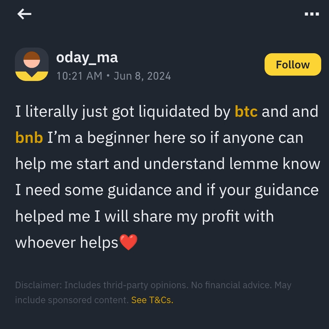 Molti dei miei amici sono stati liquidati costringendoli a diffidare del trading e delle criptovalute in generale. Un amico ha condiviso questo post
