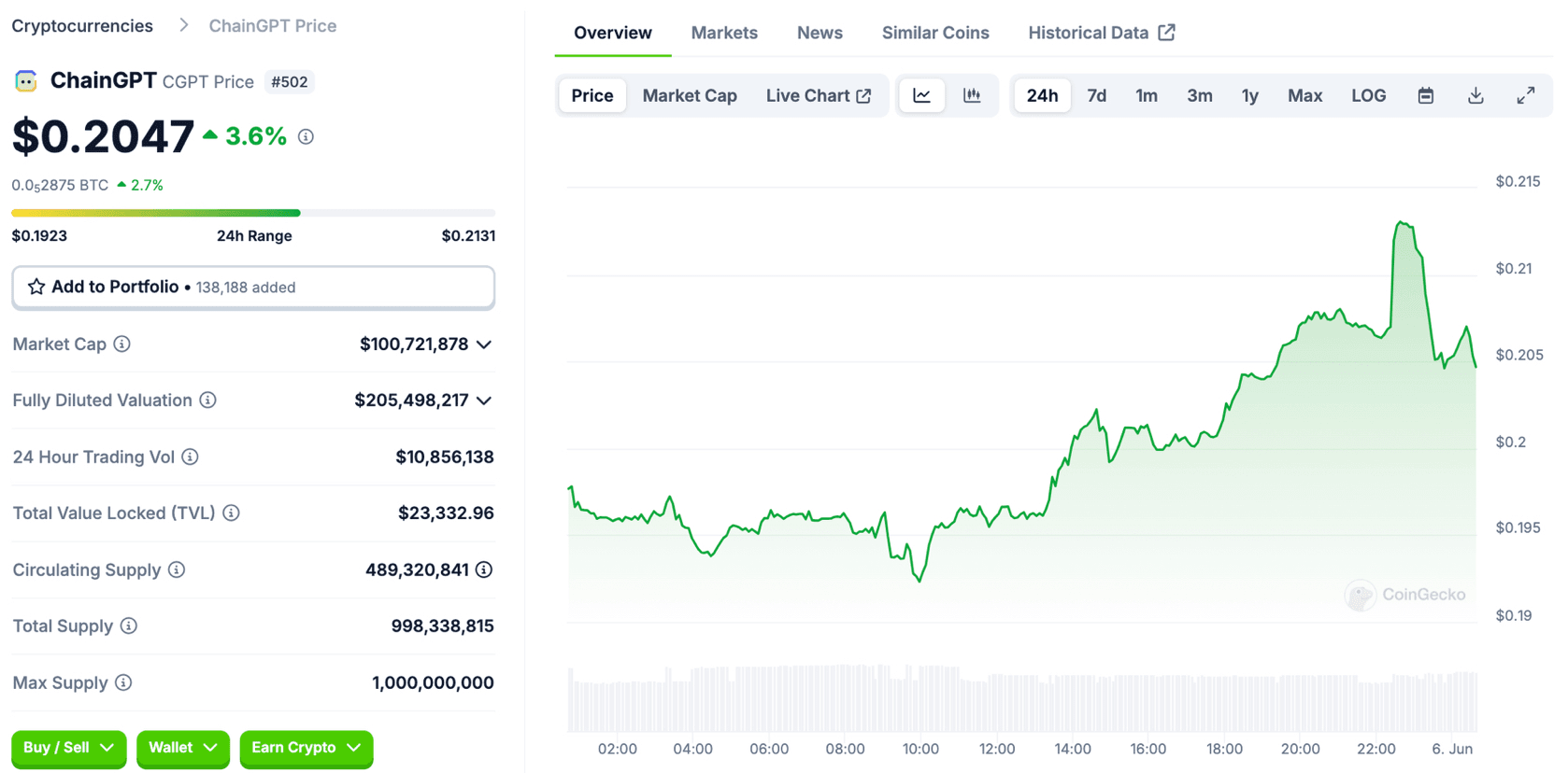 โถ๏ธ Prezzo: $ 0,2047
