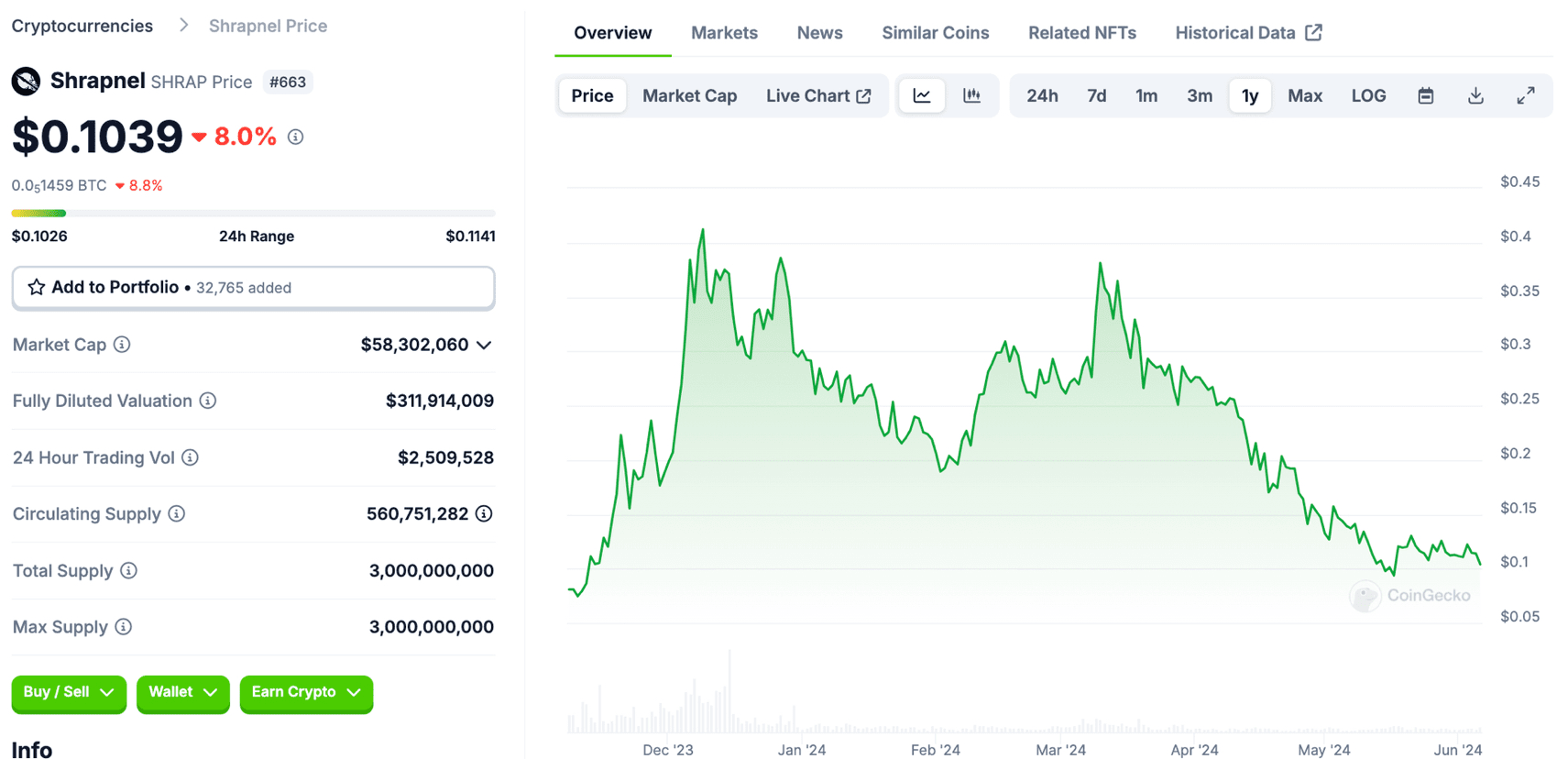 โถ๏ธ Prezzo: $ 0,1039