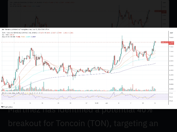 In un'analisi tecnica, l'analista di criptovalute Ali Martinez ha identificato un potenziale breakout del 40% per Toncoin (TON), puntando a un ambizioso prezzo di 11 $. L'analisi di Martinez, fornita attraverso dettagliate revisioni dei grafici pubblicate su X, fornisce un solido caso per l'imminente movimento dei prezzi di TON, sostenuto da modelli di grafici classici e livelli di ritracciamento di Fibonacci.