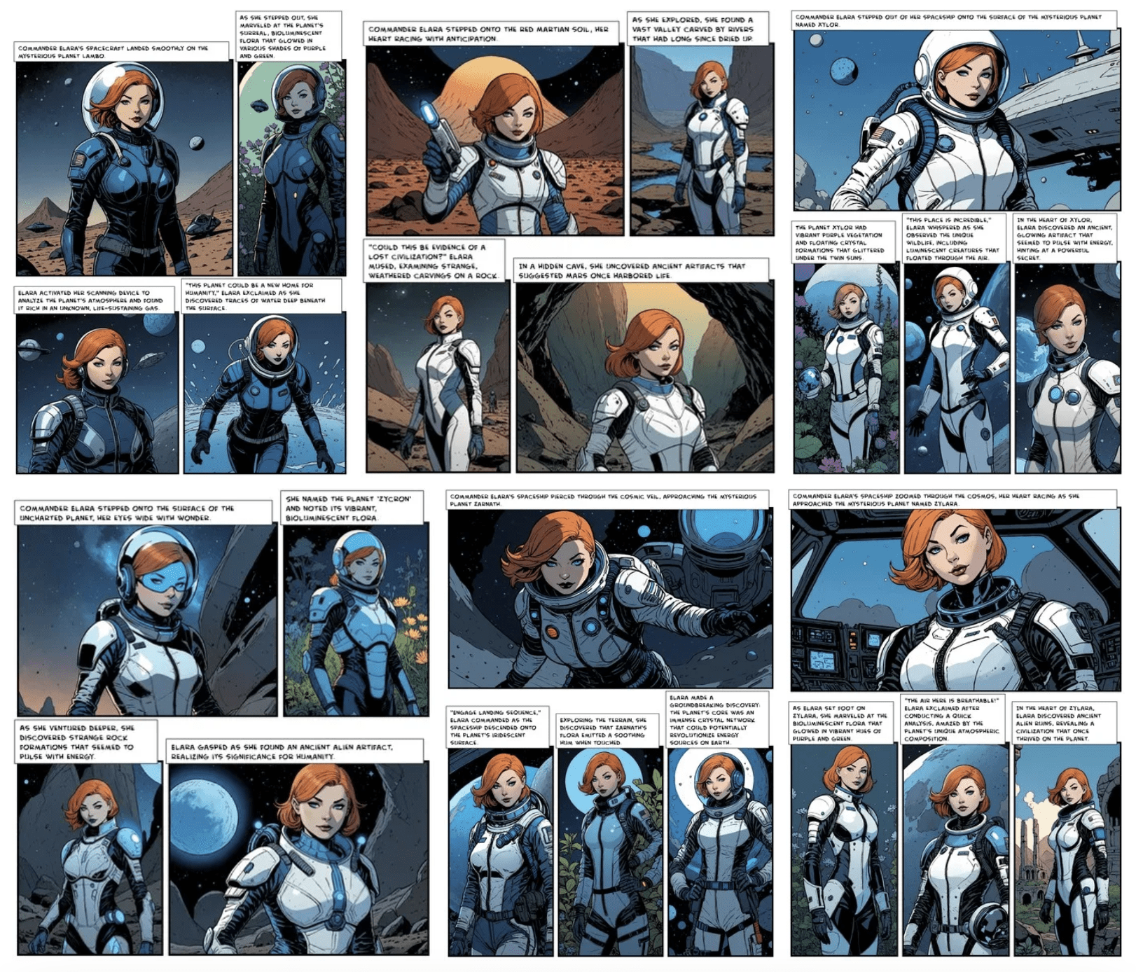Un ottimo esempio di coerenza dei personaggi su StoryChain è la Comandante Astronauta Elara. Nel nostro recente concorso di fumetti, la storia di Elara è stata raccontata attraverso oltre 2500 contributi diversi. Nonostante i diversi contributi, Elara è rimasta un personaggio coerente e avvincente, grazie alla collaborazione della nostra community. I partecipanti hanno fatto in modo che i suoi tratti, le sue motivazioni e le sue azioni fossero in linea con la narrazione prestabilita, creando una storia coesa e coinvolgente.
