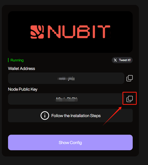 Quindi facciamo clic qui per copiare la chiave pubblica del nostro nodo luce
