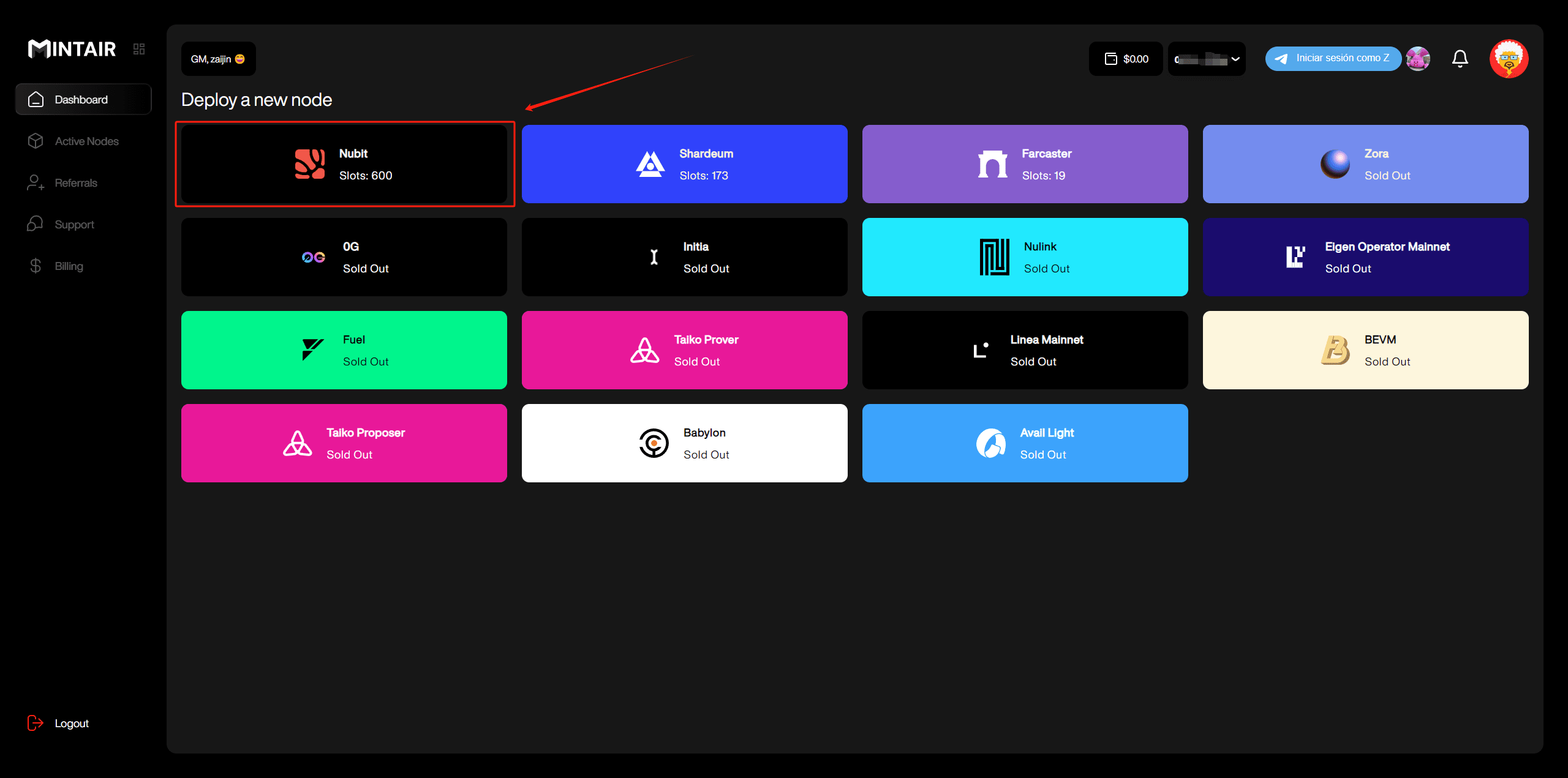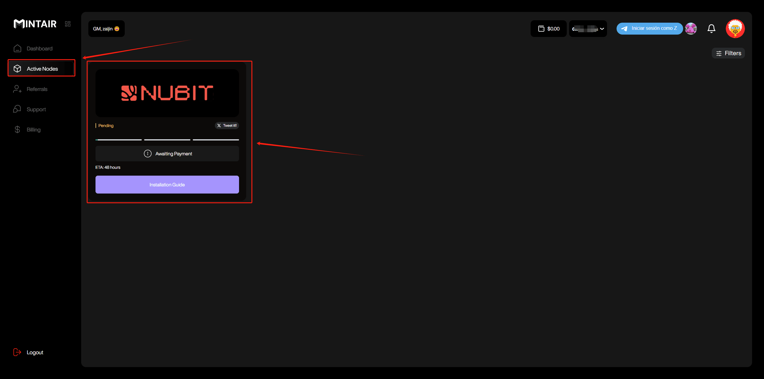 Ecco il nodo che abbiamo appena acquistato Dobbiamo attendere pazientemente che la barra di avanzamento si esaurisca prima che la distribuzione possa essere completata (circa un'ora)